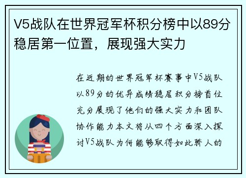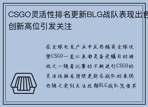 在近期的全球总决赛中,TES战队以其出色的团队协作与个人发挥引起了广泛关注。本文将从四个方面对TES战队在此次赛事中的表现进行分析,分别为:团队沟通、角色分配、应变能力和心理素质。这些方面不仅展现了TES在比赛中的亮点,也暴露了某些不足之处。在团队沟通方面,TES展现出了良好的配合默契,但在关键时刻仍存在信息传递不畅的问题;角色分配上,选手们各司其职,但有时出现了职责模糊的情况;应变能力方面,TE...